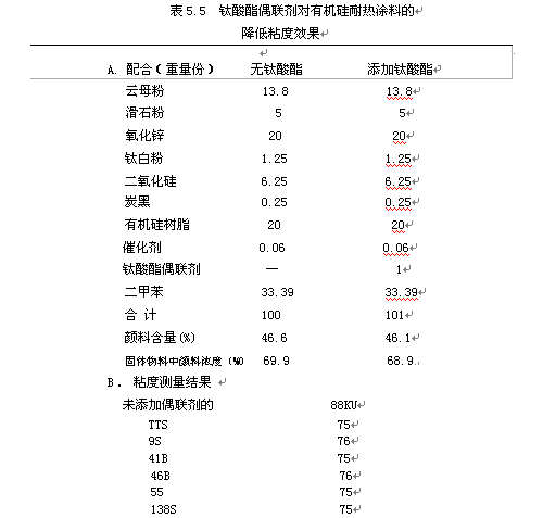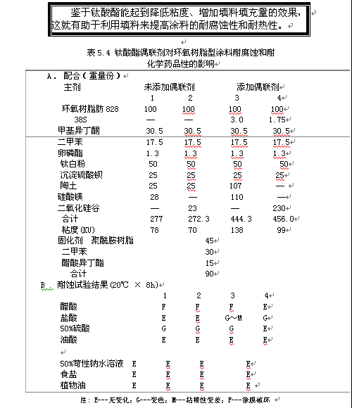 表5.1 對于不同的樹脂和填料最適用的鈦酸酯偶聯(lián)劑的相應品種及其效果