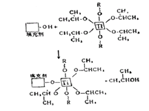 可以避免四價(jià)鈦酸酯在某些體系中的副反應(yīng),如在聚酯中的酯交換反應(yīng),在環(huán)氧樹(shù)脂中與羥基的反應(yīng),在聚氨酯中與聚醇或氰酸酯的反應(yīng)等。該類偶聯(lián)劑在許多填充劑體系中都適用,有良好的偶聯(lián)效果,其偶聯(lián)機(jī)理與單烷氧基型類似: